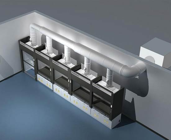 合理確定實驗室送、排風系統最大風量:實驗室排風系統排風機宜采取調頻控制,保持排風系統干管最遠點靜壓恒定。使排風機風量與系統排風量相一致。減少排風機耗電量,維持排風系統風管壓力恒定,提高排風管風量控制閥精度。同時,實驗室送風系統空調機組送風機也宜采取調頻控制,送風量應與實驗室排風系統排風量相一致。