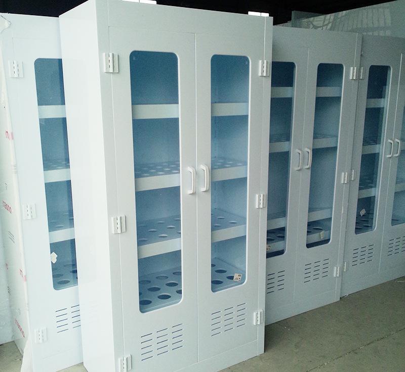具有耐強酸、強堿與抗腐蝕的特性。 雙開門(內(nèi)置四塊層板,板面開孔Φ20、Φ30、Φ40、Φ50)無結構固定板,含5mm鋼化玻